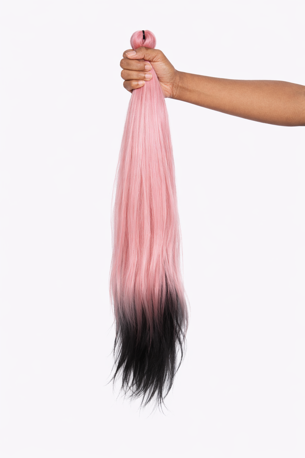 The collagen is then hydrolysed, breaking it down into smaller amino acids that make the fibre stronger, more flexible and easier to style. Unlike many synthetic options made from plastic, collagen proteins are naturally more heat-resistant, making them ideal for safe styling up to 180°C. Finally, the fibres are dyed and set on rods to achieve the desired colours and textures, ensuring consistency across every pack of hair.