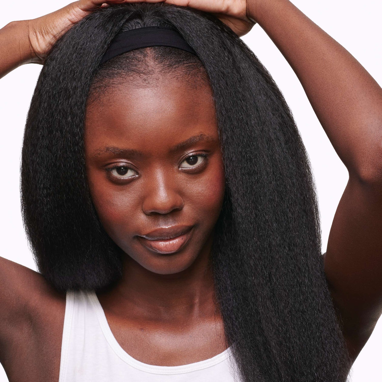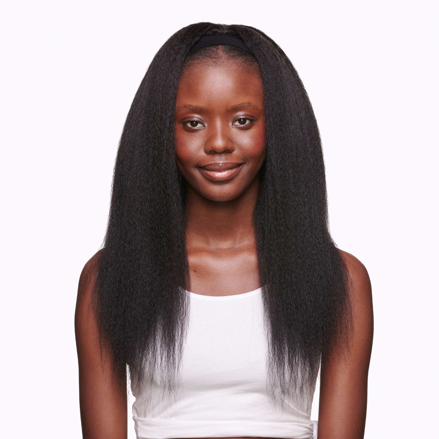 Slip in the combs in your headband wig and secure it with the band at the back.