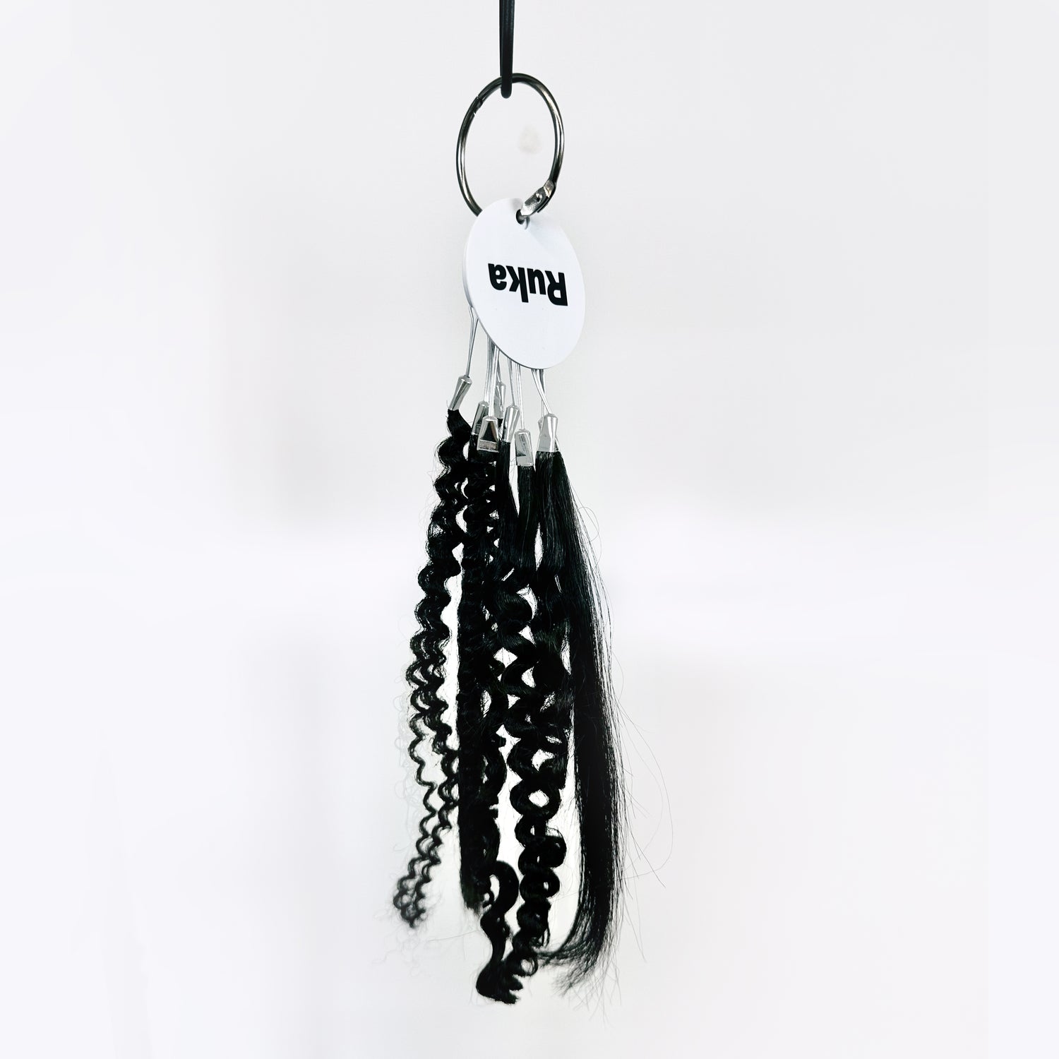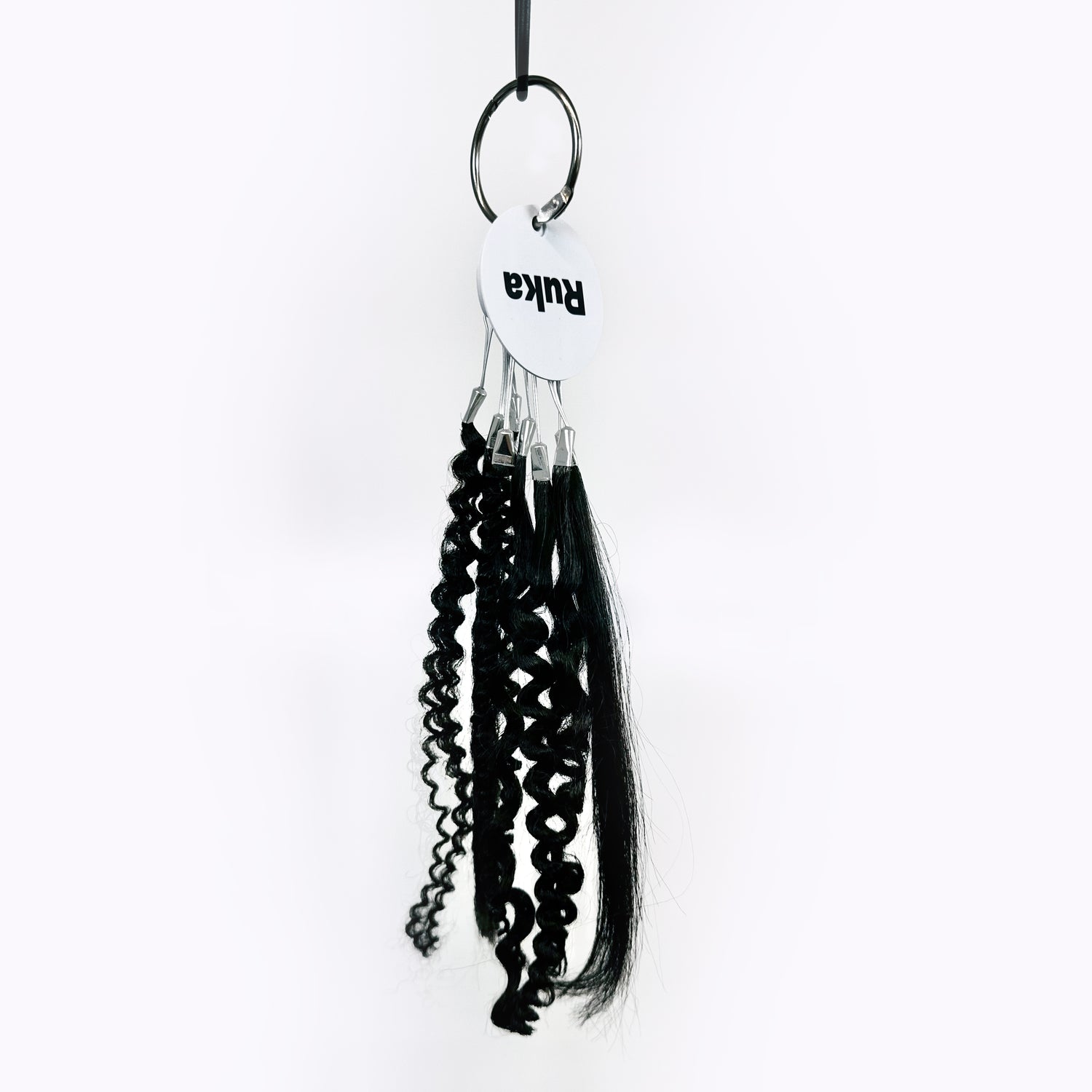 Explore the full Ruka human hair texture match range in one convenient swatch ring. Perfect for testing and comparing our textures in person, this set includes samples of all our signature textures:
